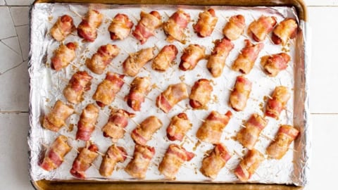 - Prep Ahead: Wrap the sausages in bacon and refrigerate overnight (covered). Add the coating and bake the next day.