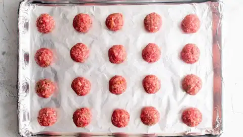 - Shape the meatballs. Using a cookie scoop or your hands, form the mixture into 2-inch meatballs. Place on the prepared baking sheets, spacing them about an inch apart.