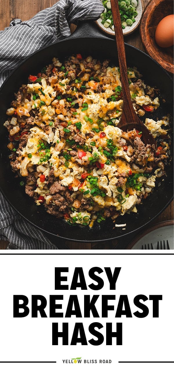 - Make Ahead – You can prep the veggies and cook the sausage and scrambled eggs ahead of time. Store them in the fridge and cook the potatoes fresh for the best texture. If using sunny-side-up eggs, cook them fresh. They do not store or reheat well on the hash.