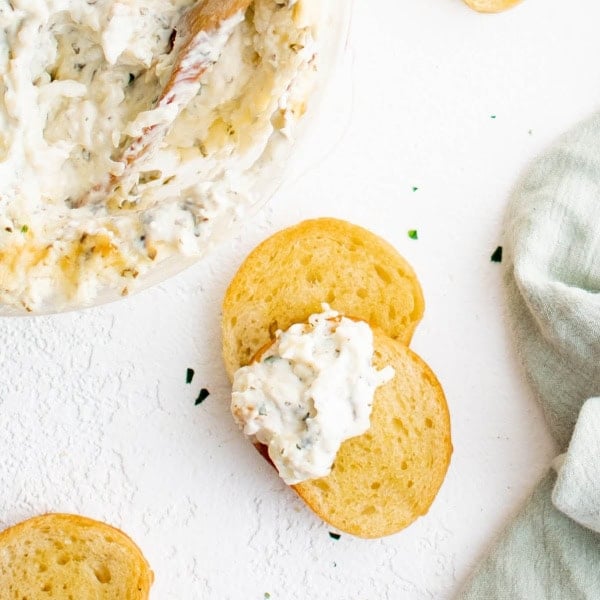 Roasted garlic and melted cheese baked into a warm, savory dip you’ll want to eat with a spoon. Serve with crusty bread or crackers.