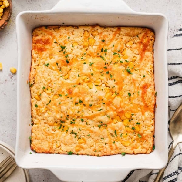 Sweet, savory, and cheesy cornbread baked casserole-style. A warm, comforting side that pairs especially well with chili, BBQ, or soup.