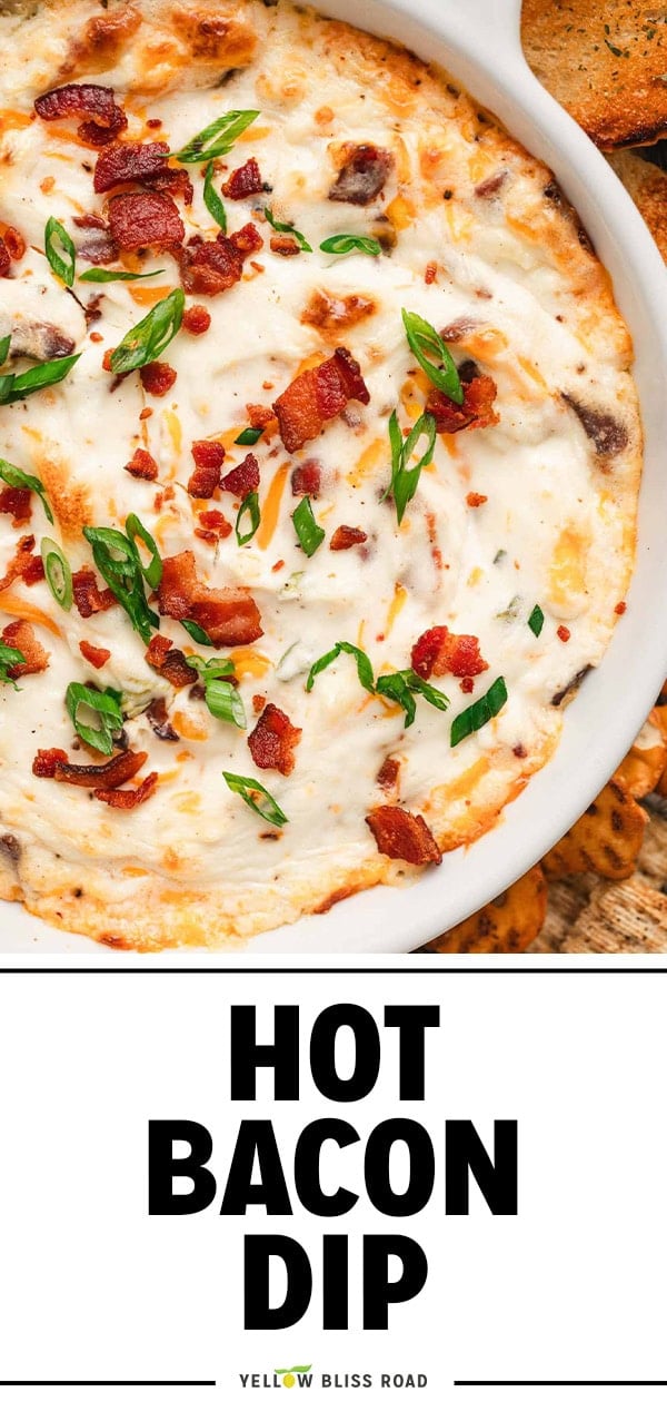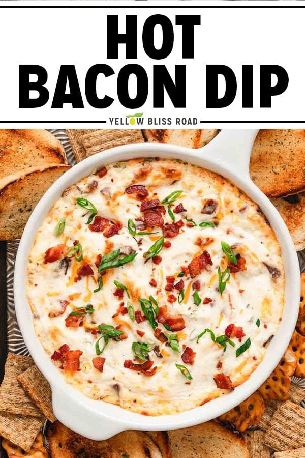- Fresh pita or a torn-up loaf of French bread are great options for serving with this hot bacon dip!