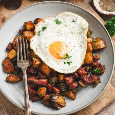 This homemade corned beef hash turns leftover corned beef and fresh potatoes into a golden, savory skillet breakfast that’s simple and so satisfying. Toss everything in a hot pan with butter and seasonings, give it time to develop those deep, flavorful edges, and you’ve got a breakfast worth waking up for. It’s the perfect way to use up leftover corned beef from your Corned Beef and Cabbage dinner.