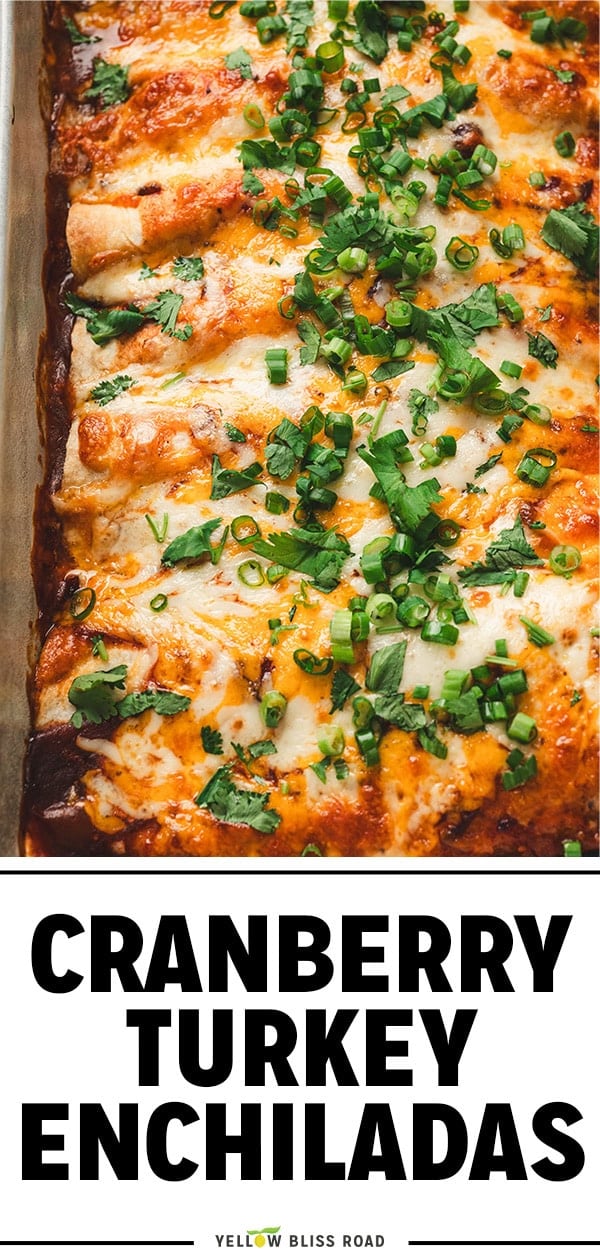 Cranberry Turkey Enchiladas give your Thanksgiving leftovers a delicious second act! With only 15 minutes of prep, these craveworthy enchiladas have smoky-sweet cranberry sauce, savory turkey, and melty cheese, all baked together until golden and bubbly.