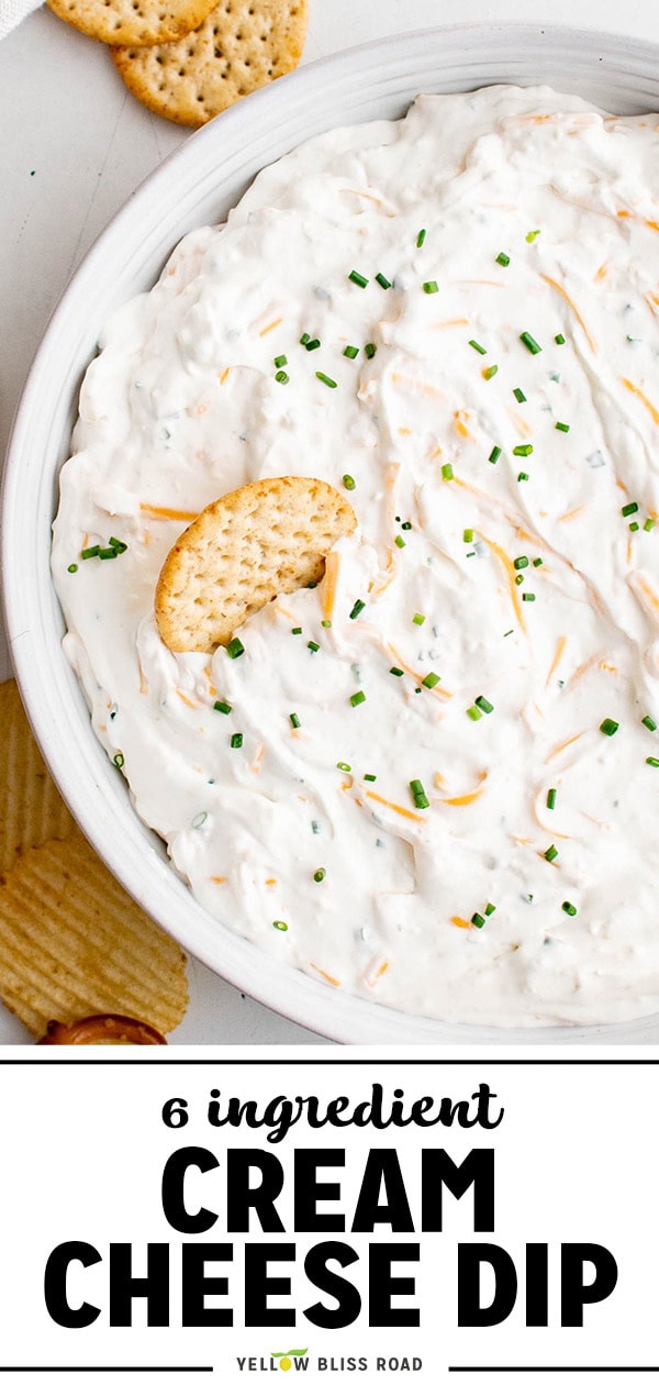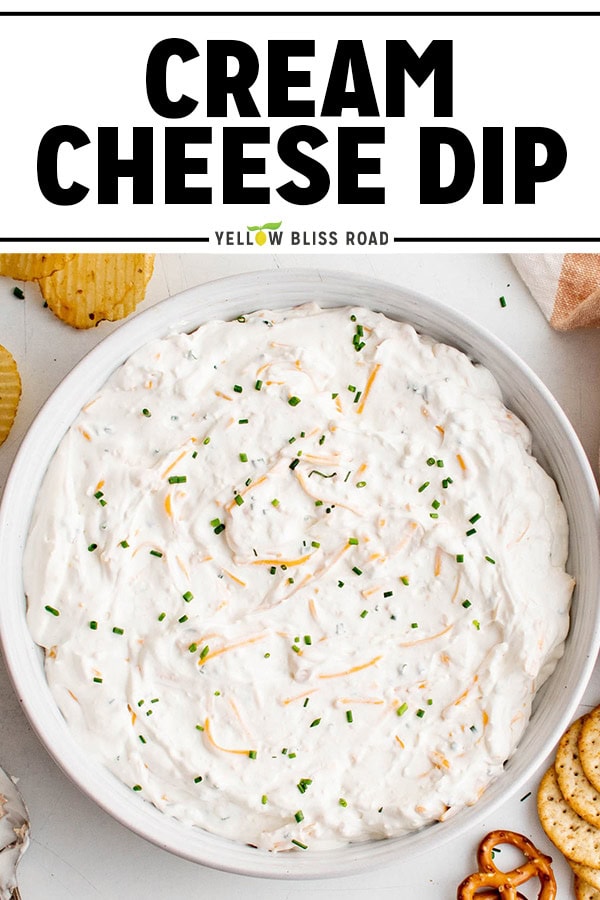 - Transfer the dip to a serving bowl, garnish with extra chives if desired, and serve with chips, crackers, pretzels, or fresh vegetables.
