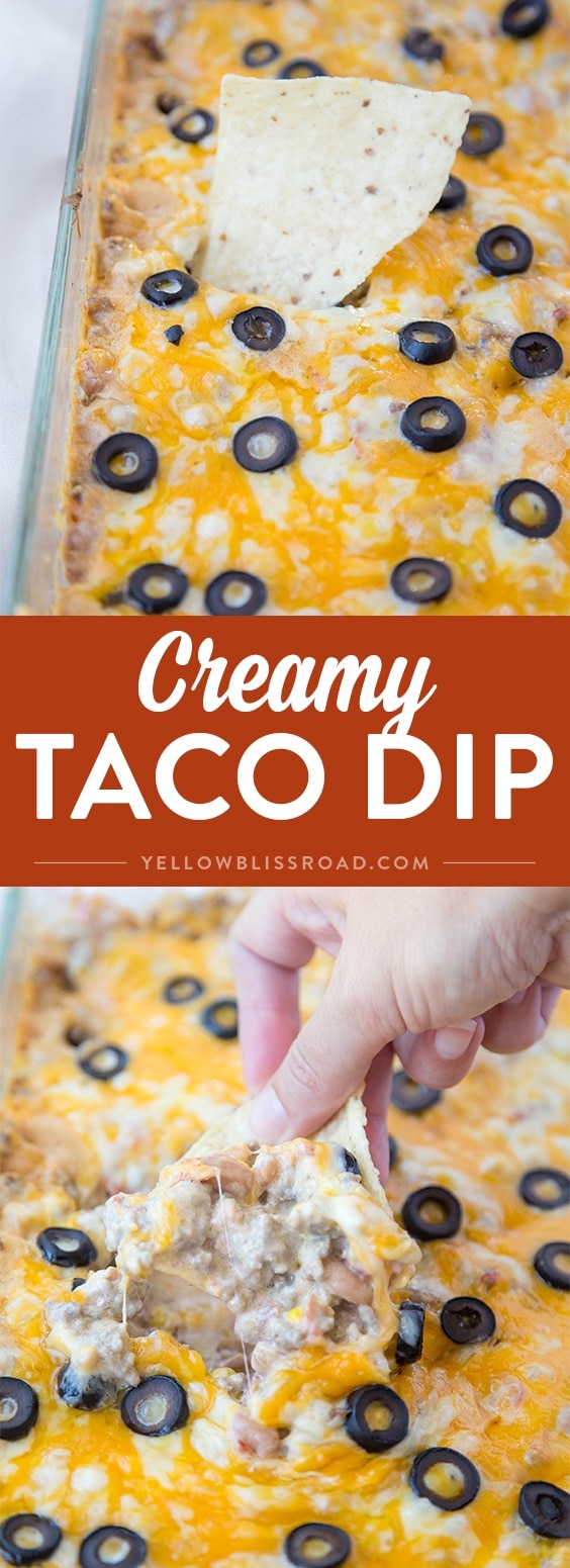 This Creamy Taco Dip is sure to be the hit of your next party. It’s creamy and meaty and full of flavor, making it perfect for tailgating, too!