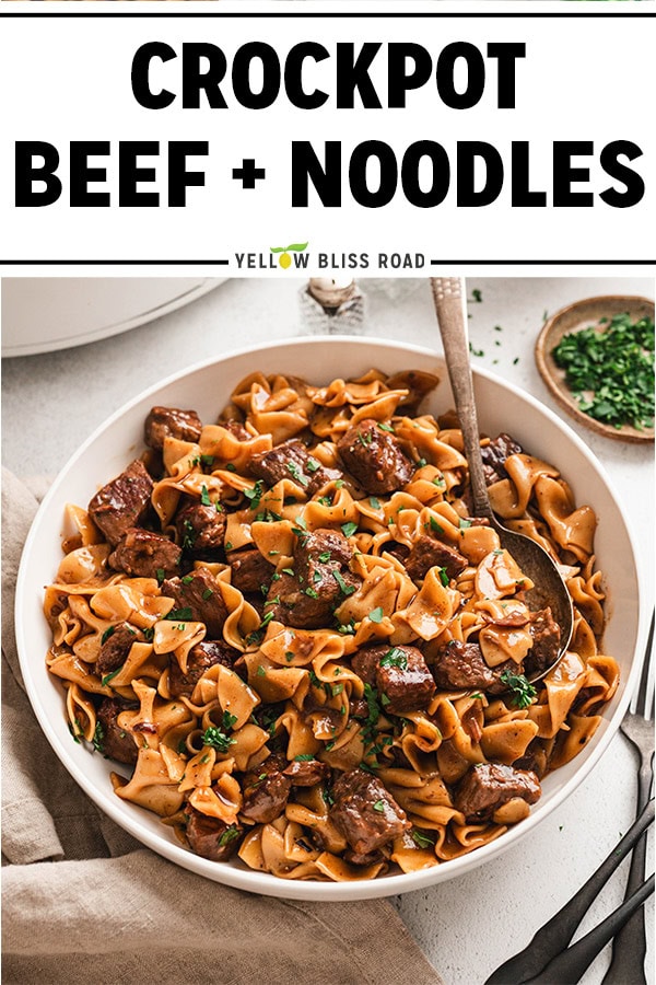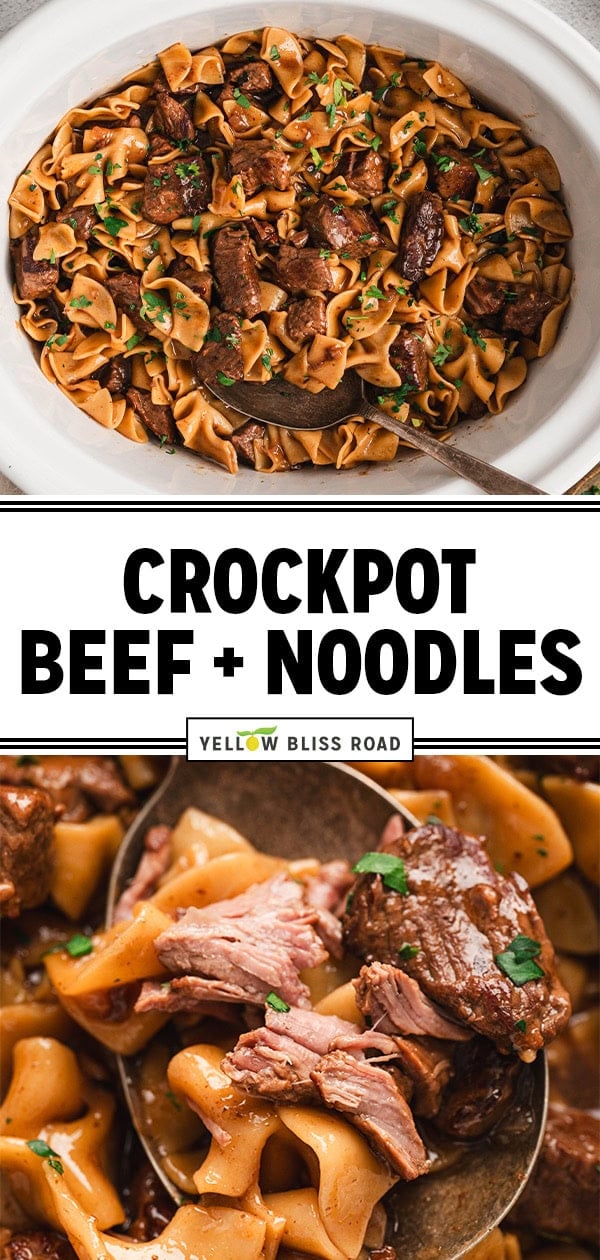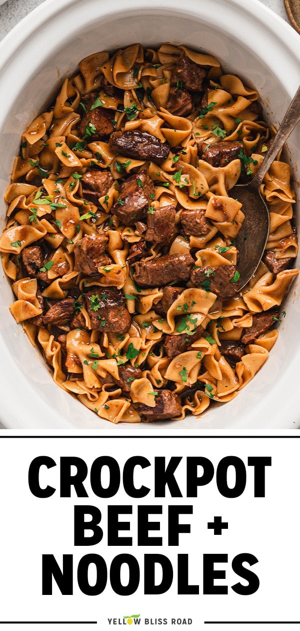 Tender Crock Pot Beef and Noodles made in your slow cooker is one of our favorite savory comfort food dinners. I keep it simple with dried egg noodles, but you can also make your own or use frozen noodles.
