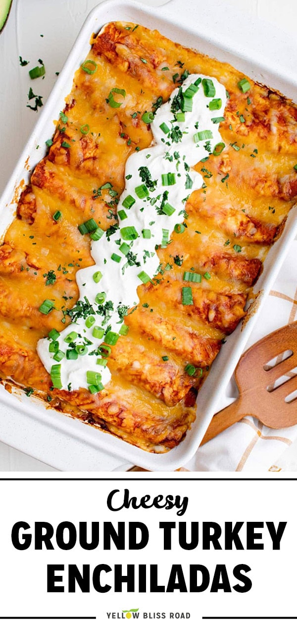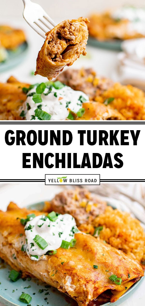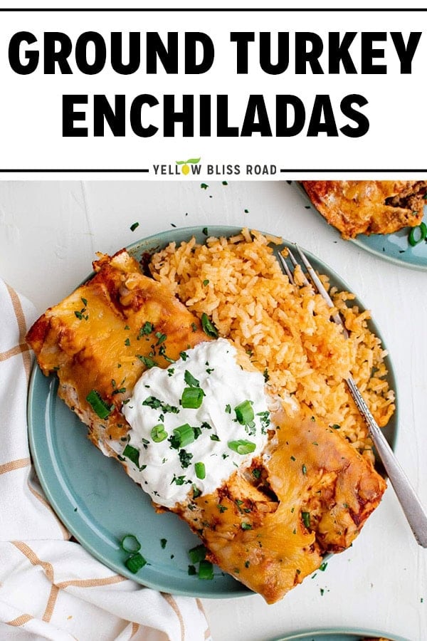 Make Ahead Tip: Ground Turkey Enchiladas can be made and refrigerated up to 2 days in advance before baking. Let sit out for 15-30 minutes to come to room temperature, then bake as directed.