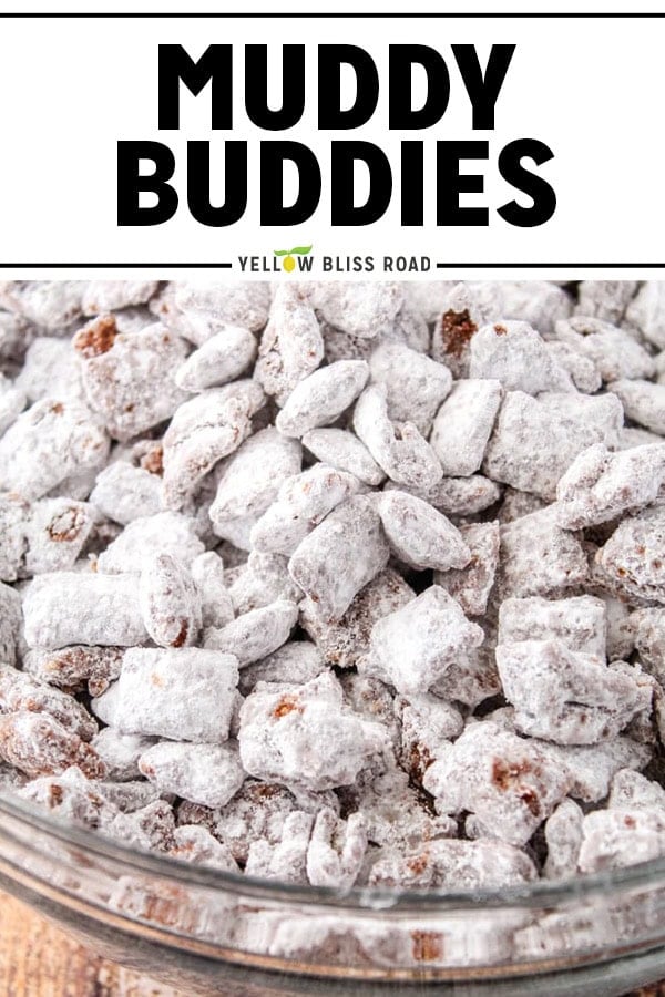 Storing: Store Muddy Buddies in an airtight container for up to 1 week in the fridge. You can also store at room temperature, but we prefer it chilled so it’s not too sticky.