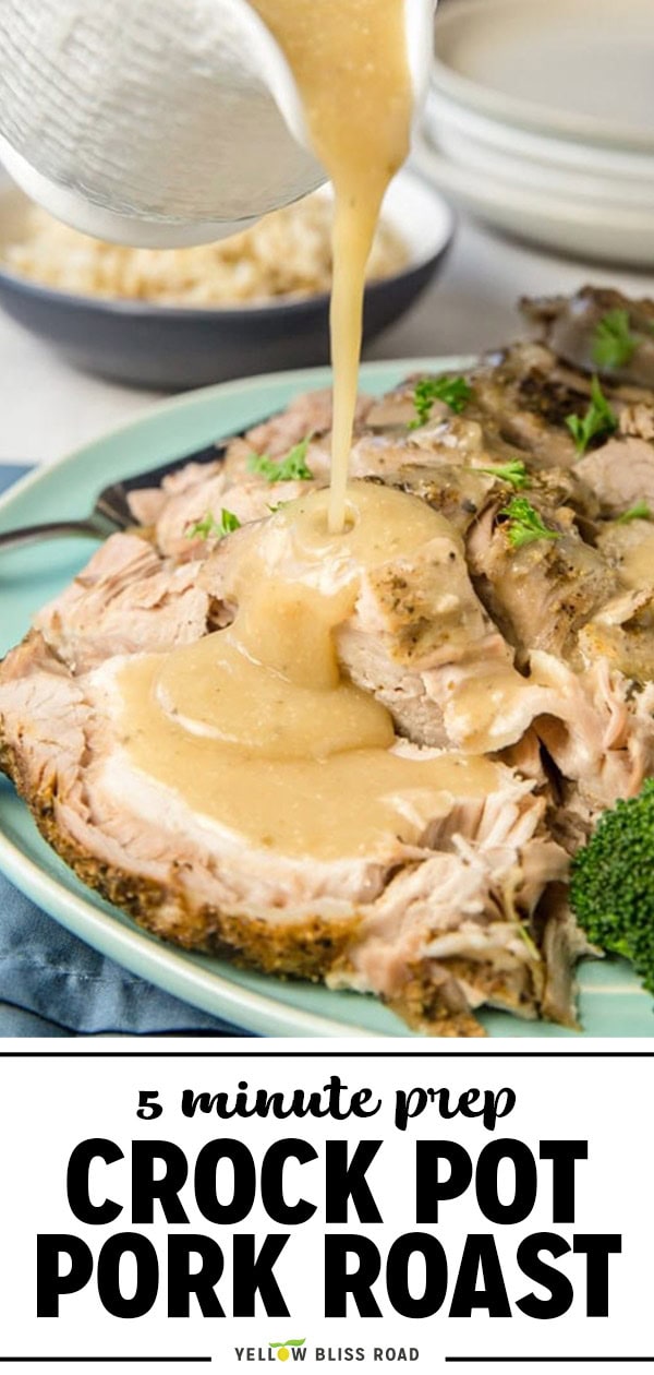 This Crock Pot Pork Roast recipe is tender and juicy and perfect for busy weeknights. It’s super easy to make in your slow cooker with just a few simple ingredients and about 5 minutes of prep. Serve it with gravy, mashed potatoes, and green beans for the ultimate comfort food meal.