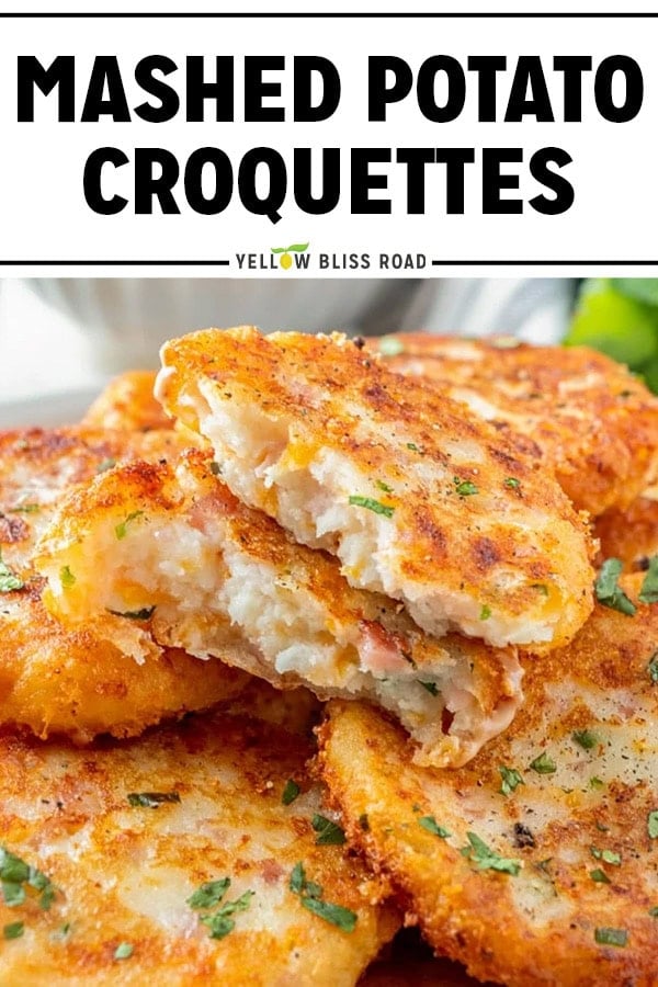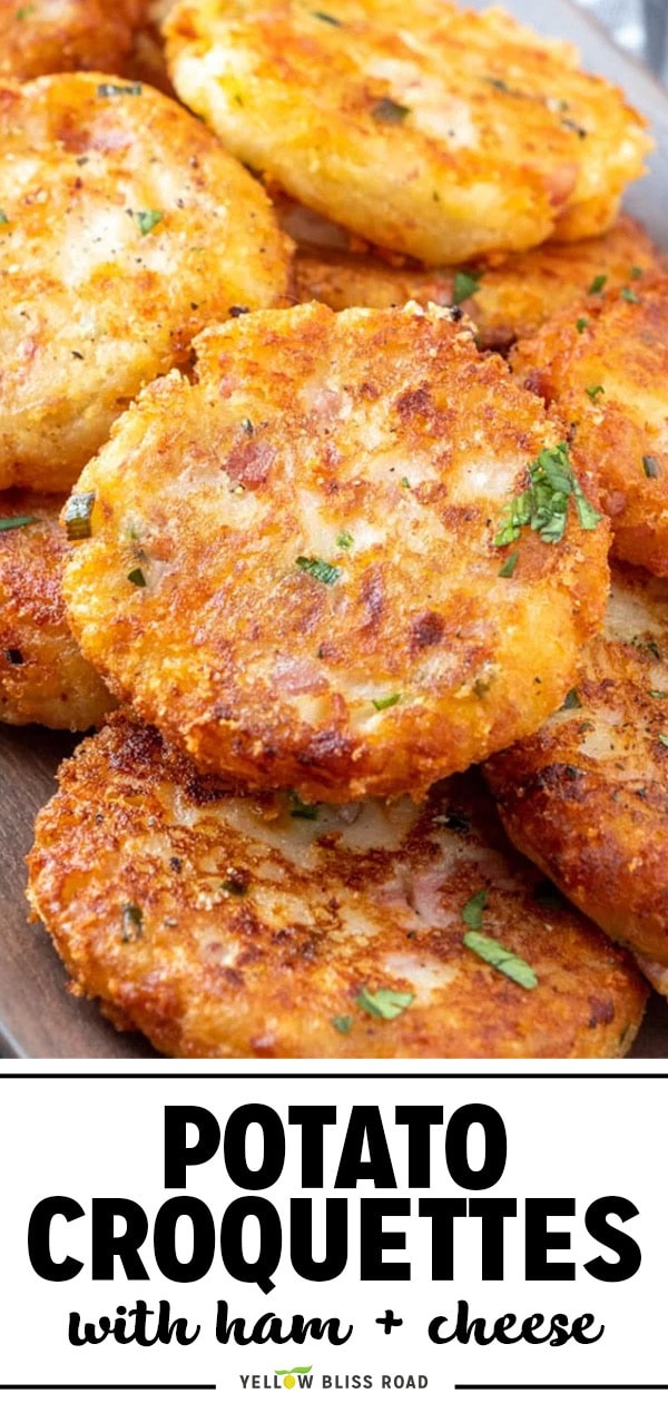 These ham and cheese mashed potato croquettes are golden and crispy on the outside, creamy on the inside, and the perfect way to use up leftover mashed potatoes and ham. They come together in about 25 minutes with just a handful of ingredients you probably already have on hand.