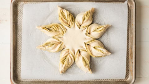 - Holiday Version: Make a red and green star bread using basil pesto and sun-dried tomato pesto.