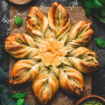 This stunning Pesto Star Bread looks impressive on the table, but the process is simple from start to finish. Soft, pull-apart layers filled with pesto and parmesan make it perfect for holidays, parties, or any time you want something special without a lot of effort. Best of all, it comes together with basic pantry ingredients in about an hour.