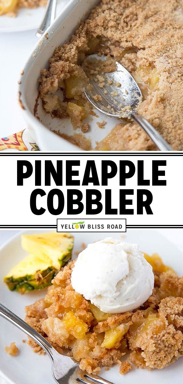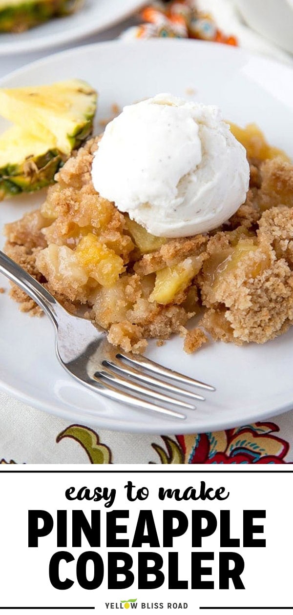 This Pineapple Cobbler is the perfect dessert for summer! It uses fresh, sweet pineapple with a basic cobbler base and topping. Top with vanilla ice cream and caramel sauce for the ultimate indulgence.