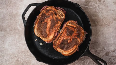 - Make ahead: Sandwiches can be partially assembled (bread, cheese, corned beef) and stored tightly wrapped in the fridge. Add the dressing and sauerkraut just before griddling to keep the bread from getting soggy.