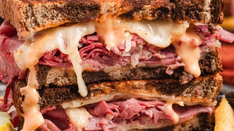 Can I use pastrami instead of corned beef? Yes, and it’s a common swap. Pastrami is smoked and spiced, while corned beef is brined. Both work in a Reuben, but the flavor will be slightly different. Some people prefer one over the other; it’s worth trying both.