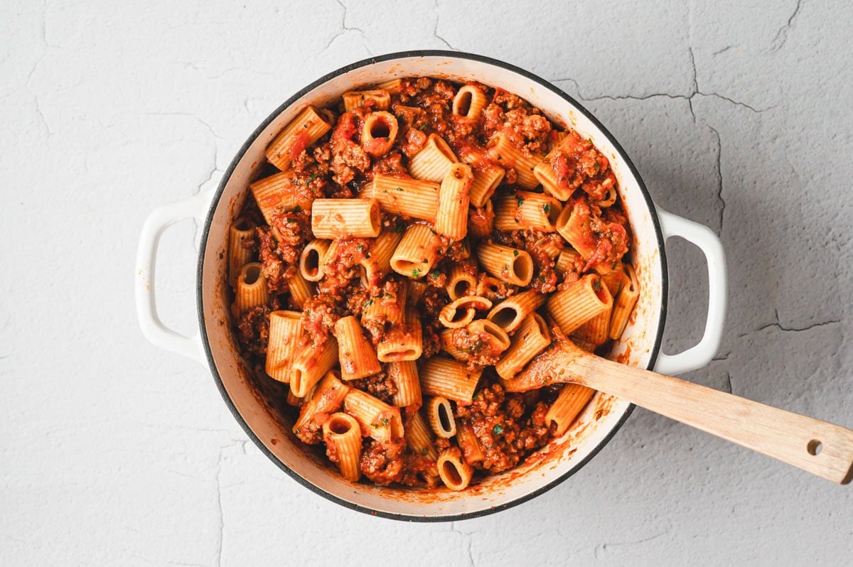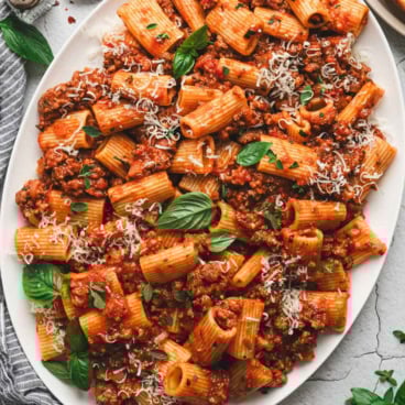 Rigatoni Bolognese is a hearty, comforting meal made in large batches to feed a hungry crowd. This classic Italian-American favorite is weeknight-friendly and perfect for gatherings, with bold, slow-simmered flavors that taste like it’s been cooking all day.