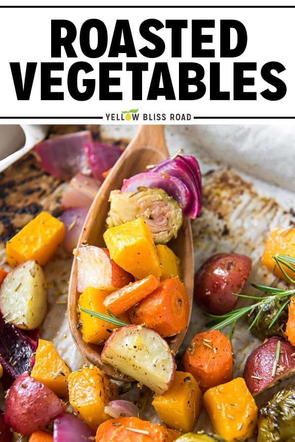 Roasted vegetables are great for meal prep too! Mix with quinoa or lentils and add your favorite dressing (balsamic is delicious) and protein (like baked chicken breasts) for an easy harvest bowl. Sprinkle on some feta or fresh herbs for garnish.