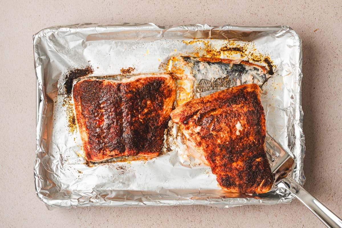 - Pat the salmon dry before seasoning. Moisture is the enemy of a good sear. Before rubbing the salmon with oil and spices, use paper towels to thoroughly pat it dry on all sides. This helps the spice rub adhere properly and ensures the salmon gets a slightly caramelized exterior.