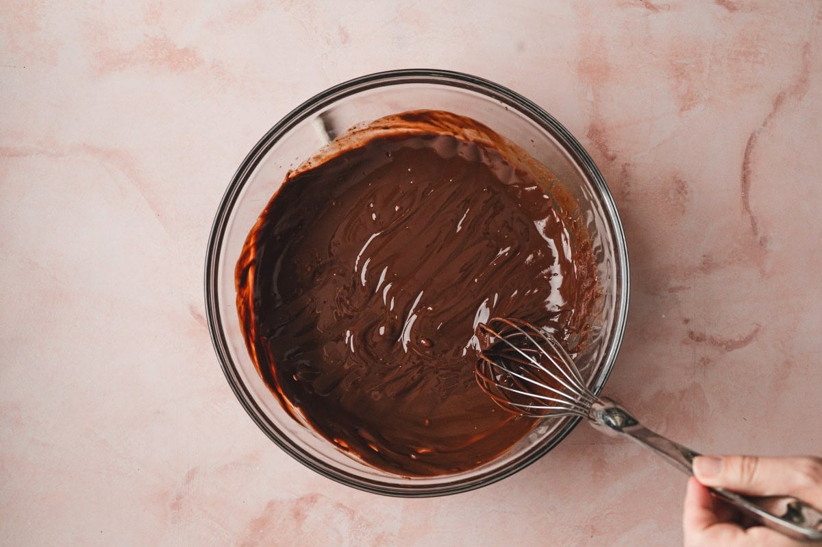 Whisk until glossy and combined. This step helps create that signature crackly brownie top.