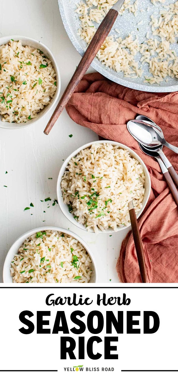 Herb Seasoned Rice is fluffy, buttery, and full of garlic flavor. It’s the perfect simple side dish to complement any meal and takes just 20 minutes to make. Forget the boxed mixes. Once you see how easy it is to make seasoned rice from scratch, you’ll never go back.