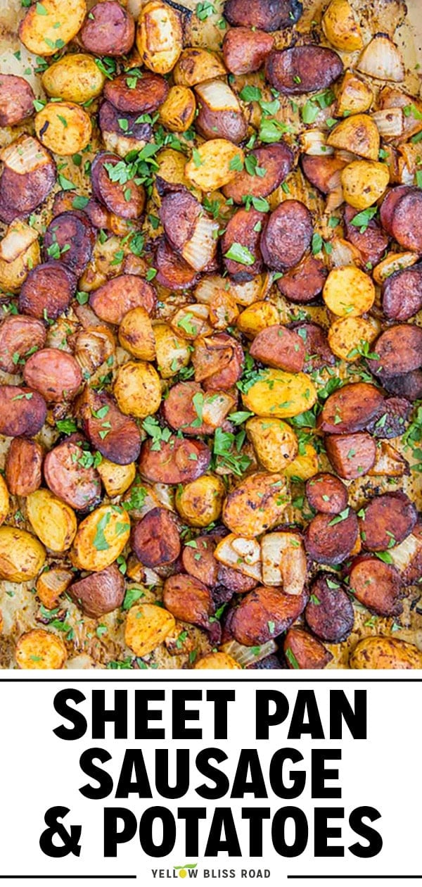 - Don’t overcrowd the pan. Spread everything in a single layer so the potatoes get crispy edges instead of steaming. If you’re doubling the recipe, use two sheet pans.
