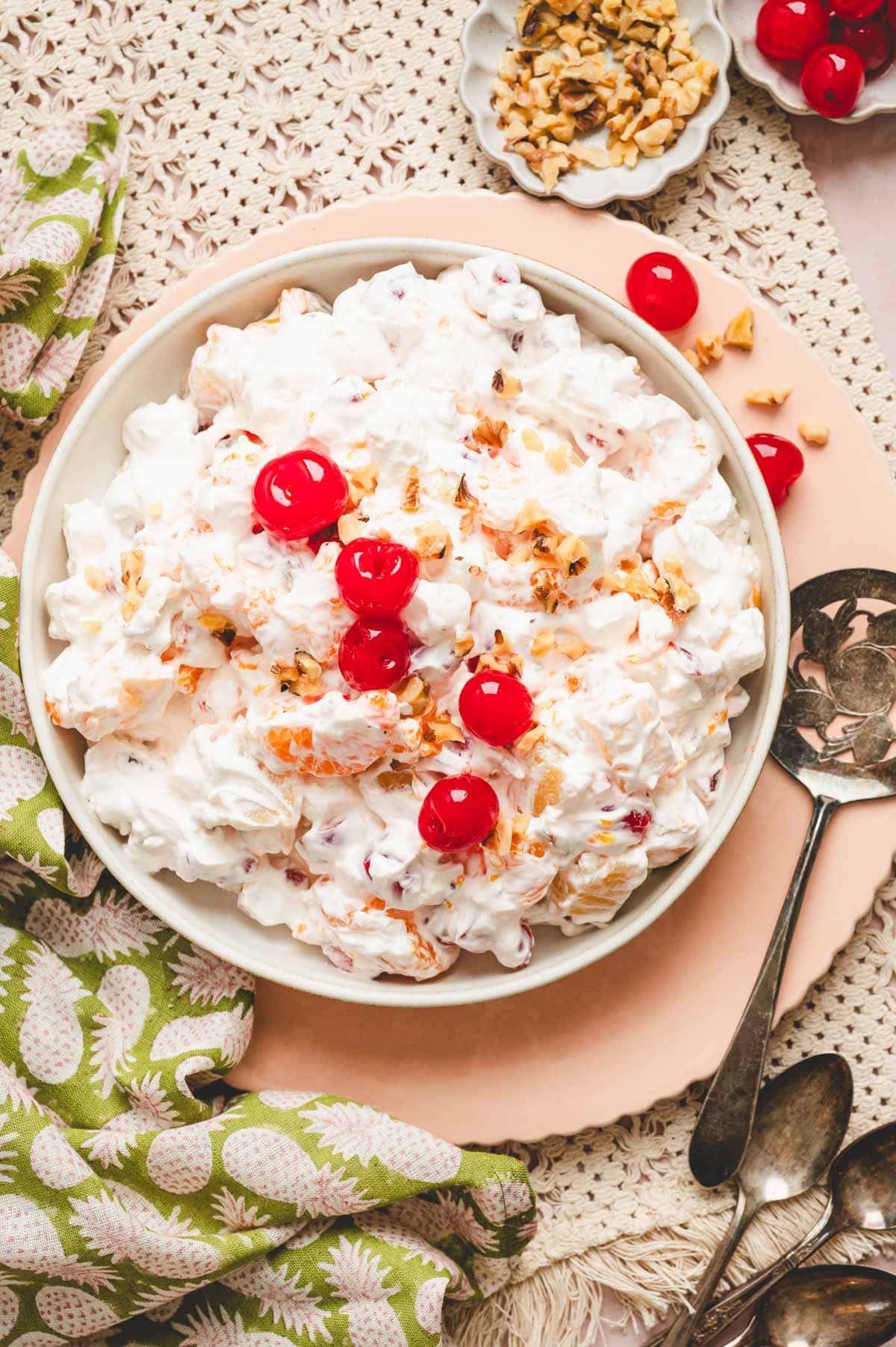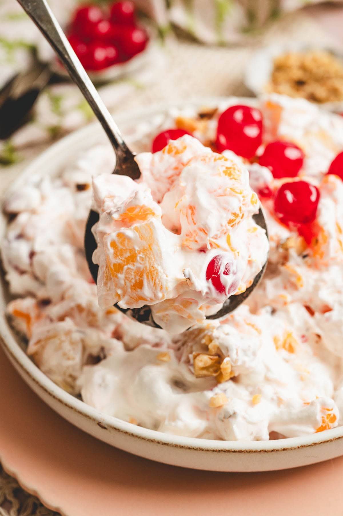If you love creamy fruit salads, you’ll also want to try Cranberry Fluff Salad and Mandarin Orange Salad. For something a little different, Strawberry Pretzel Salad is another favorite.