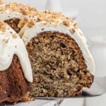 Spread the frosting on top of the cooled bundt cake and top with chopped walnuts.