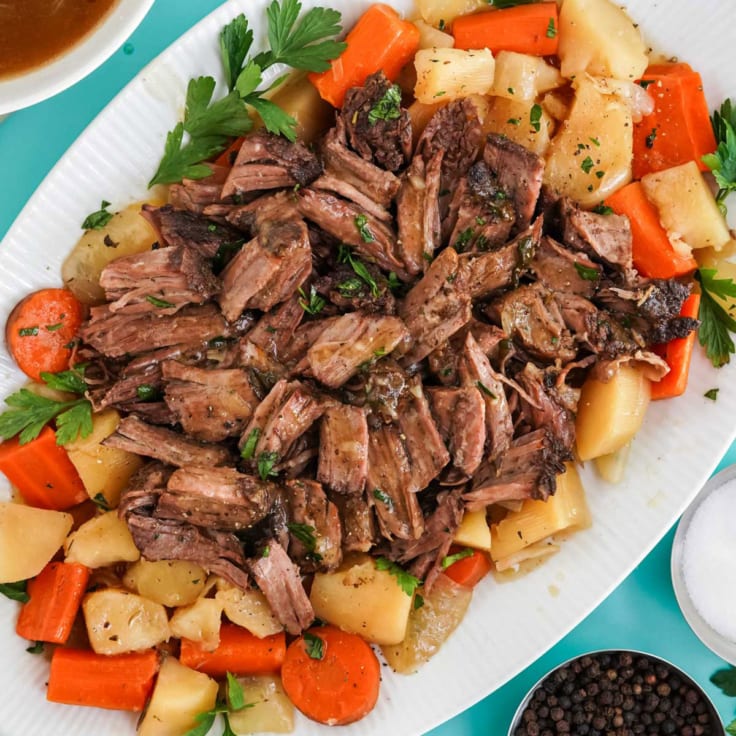 Learn how to make a tender, flavorful pot roast in your slow cooker with carrots, potatoes, and a rich homemade gravy. Just season, sear, and let the crockpot do the rest.