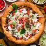 Remove from the oven and allow to sit for 10 minutes. Slice and serve garnished with your favorite taco toppings.